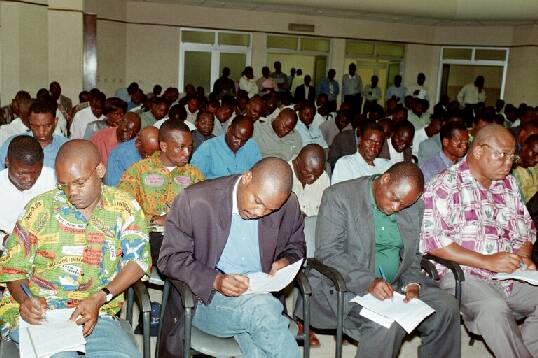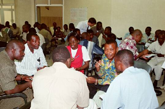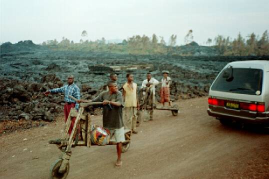 Originally the training was scheduled for the 23rd January, to be held at the RCD's command centre in Goma. The RCD cabinet then requested Tony to come over on the 17th January but Tony was unable to come this early. This proved quite fortunate as the Nyiragongo volcano erupted on the 17th and melted many of Goma's training venues as well as destroying 70% of the town. As a result they had to postpone the training. But they were so keen to do the training that barely two weeks after the catastrophe they told all the senior members of the Government to make sure they could attend. The plan was to run two 3-day seminars for about 35 people each. But after the first half-day (Sat 2/2/02) they put out a large number of broadcasts over the radio and television saying that everyone who plays a senior role in the Government must attend - even if they need to fly in.